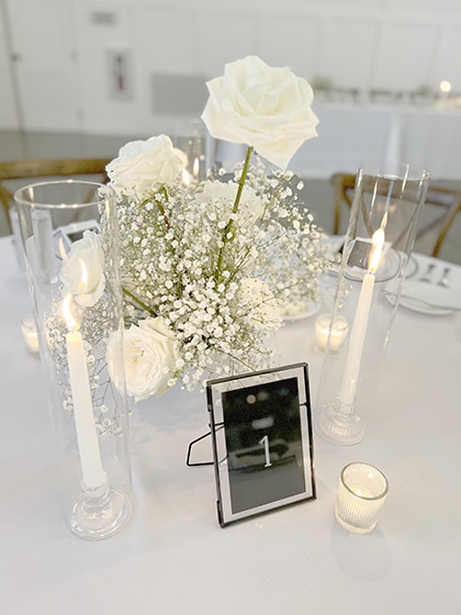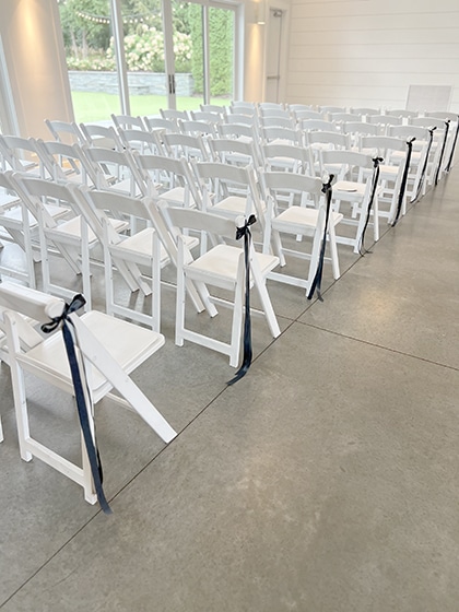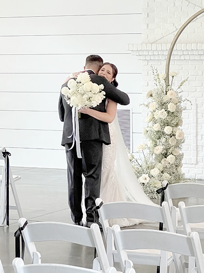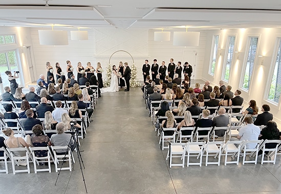 So, now you have the vision — an outdoor ceremony on the bistro-lit turf grass and an indoor reception with the doors opening to the plaza patio for cocktail hour (with landscaping, lawn games, fire pit, and mobile bar). It was going to be perfect!