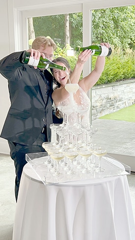 After dinner, the surprises kept on coming! They had a s’mores bar for dessert and a champagne tower! The night played on with dancing and laughing and their first dance indoors (instead of outdoors) since it was still spitting rain.