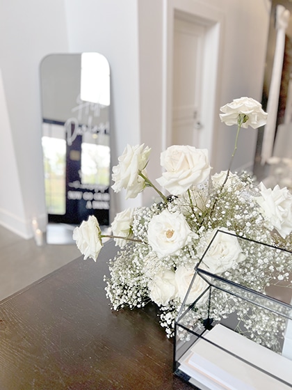 Hannah and Austin chose The Hutton House in Medicine Lake, Minnesota for a million reasons, but mostly because of its outdoor plaza courtyard ceremony space and its modern, sleek, clean, white, minimalist-yet-luxurious indoor space. I swear, every inch of that venue has been designed! (It had amazing sophisticated wallpaper and patterned carpet in every room!) Plus, they chose it for its proximity to downtown Minneapolis and Medicine Lake (amazing photo ops!) nearby! It fit their black and white and babies breath wedding perfectly. Hannah and Austin could get ready, take portraits, have the ceremony, cocktail hour, dinner, and dancing all in one location.